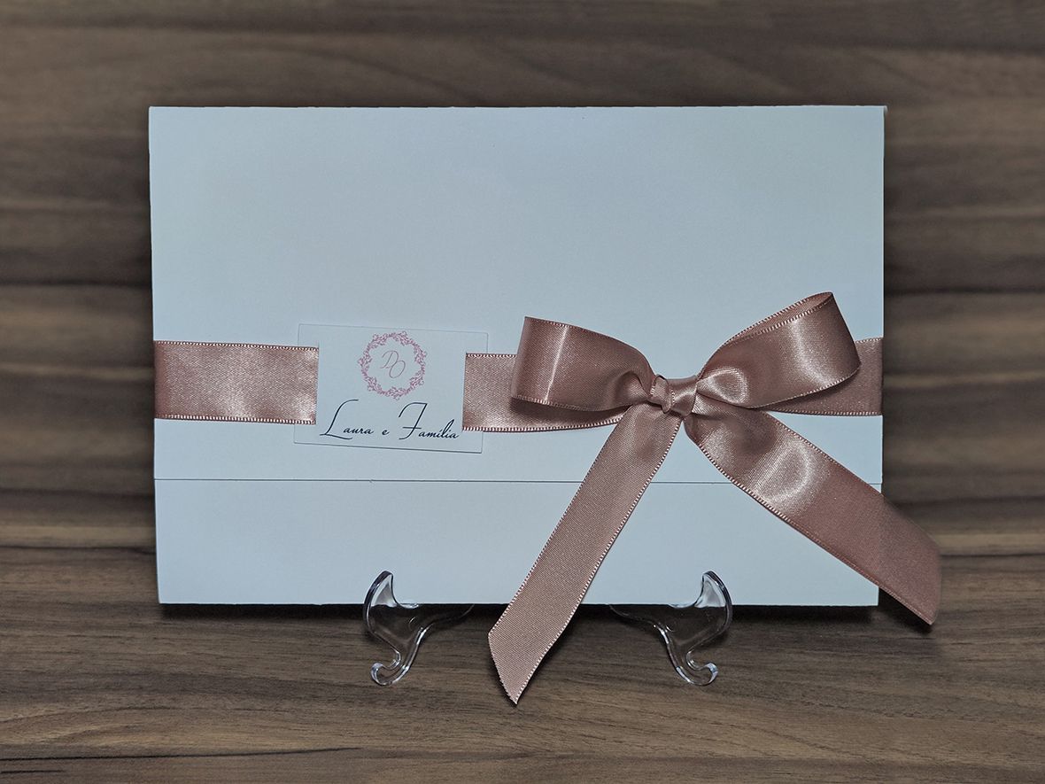Convite papel Opalina 240 g tamanho 15x21 fechado e 29x21 aberto