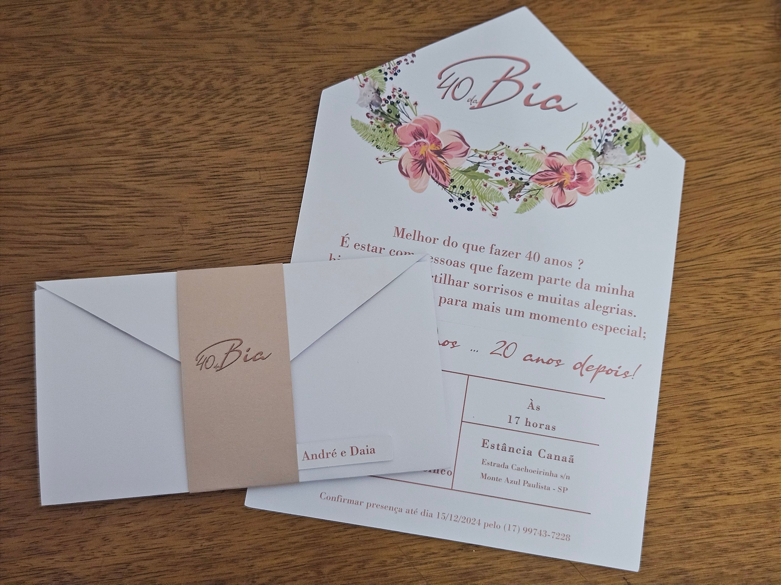 Convite papel Opalina 240g tamanho 11x21 fechado e 21x29 aberto